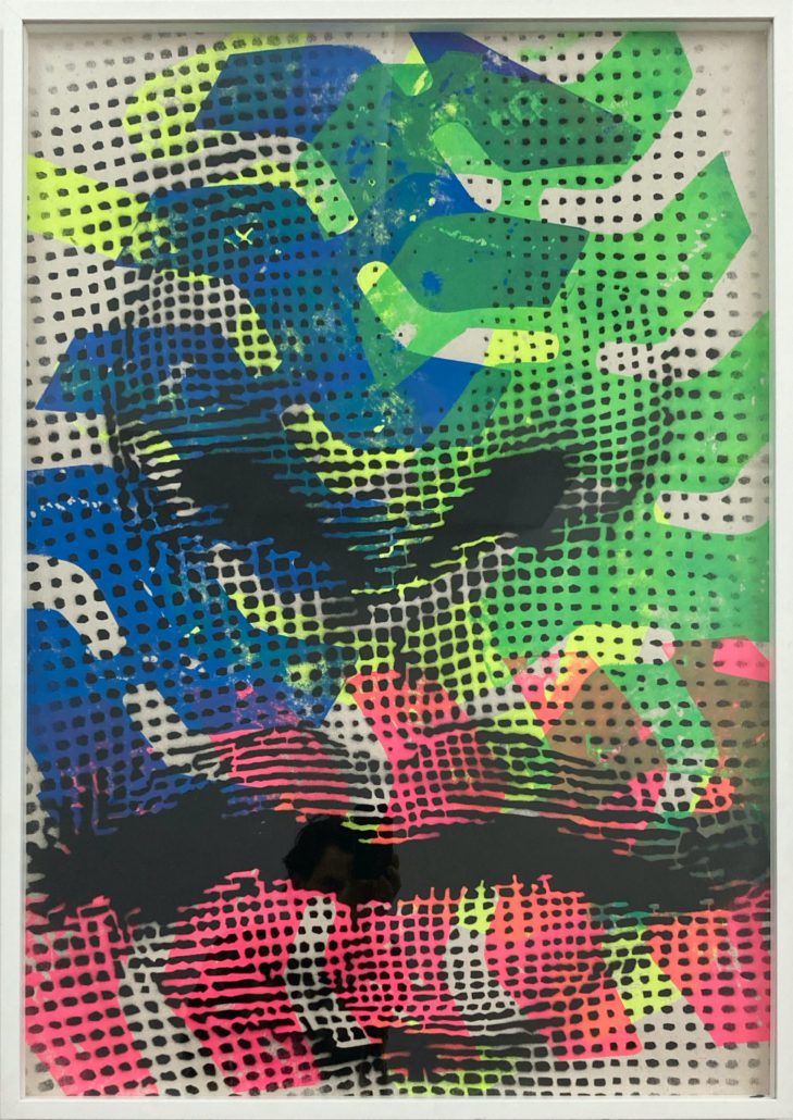 After 3 years of continuous construction in front of his studio, Emess decided to integrate this condition into his work and literally invited the excavator drivers to a printing session to drive their paint-soaked tyre treads over his work.