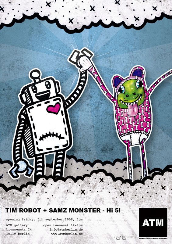 ATM is proud to present with HI 5! more than 20 different pieces of two urban artists which collaboration started at ATM Gallery and we welcome you and your friends to another opening night.
